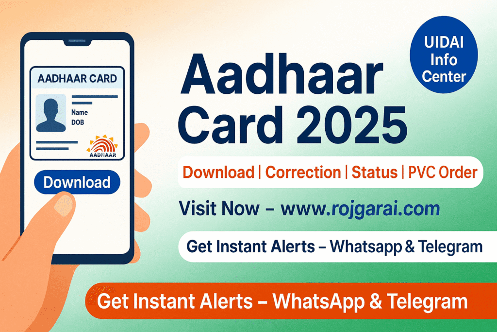 Aadhar Card Download, Correction, Status 2025 – rojgarai.com Short Information: The Aadhaar card, issued by UIDAI, serves as India’s most