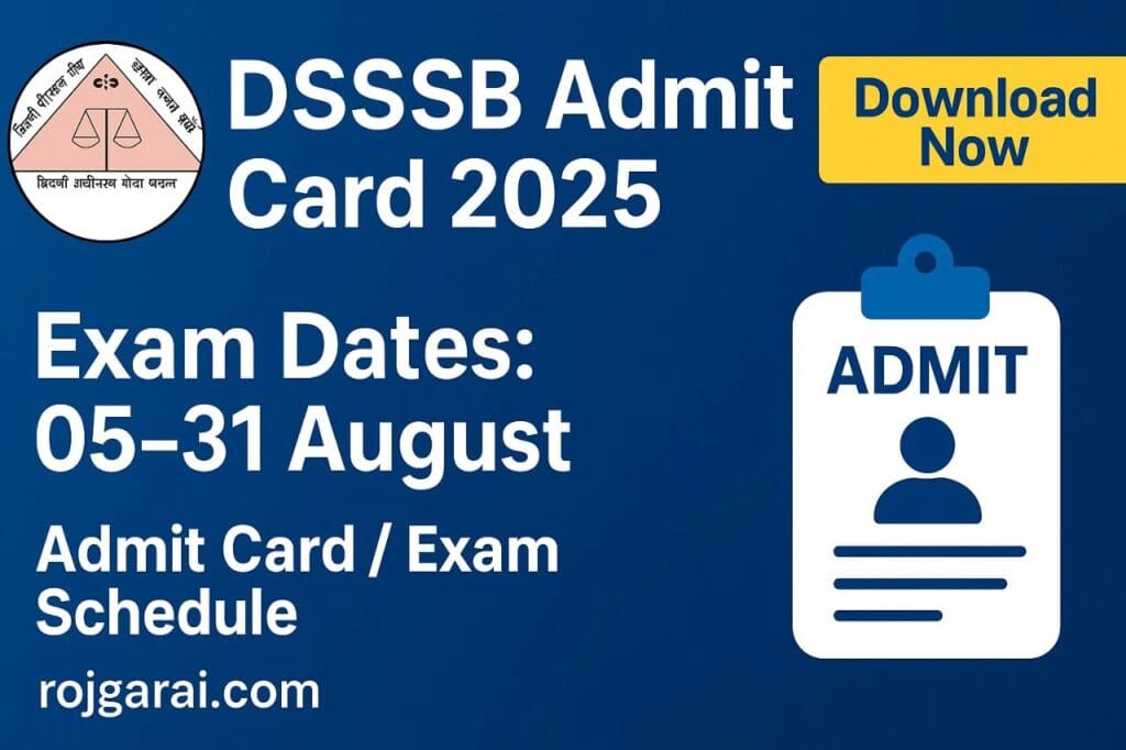 Delhi Subordinate Services Selection Board (DSSSB) has released the official DSSSB Admit Card 2025 for multiple posts and phases. The main examination window is scheduled between 05 August 2025 and 31st August 2025 with additional phase-wise dates as applicable. Candidates who applied earlier for DSSSB recruitment can now download their admit card from the official portals dsssbonline.nic.in or dsssb.delhi.gov.in. The admit card contains essential details like candidate name, roll number, exam date & time, exam centre address and important instructions. Read the full post carefully for step-by-step guidance, exam mode, documents to carry and useful links.